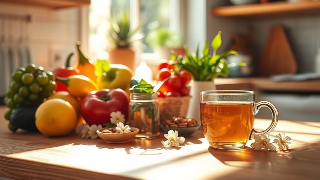 To balance your hormones naturally and feel like yourself again, focus on nutrient-dense foods rich in healthy fats, leafy greens, and antioxidants. Incorporate regular exercise, combining aerobic, strength, and flexibility workouts to regulate stress and sex hormones. Manage stress through mindfulness, deep breathing, and enjoyable activities. Consider herbal remedies like ashwagandha and omega-3s for additional support. Adopting these lifestyle adjustments can improve hormonal health, allowing you to feel more energetic and balanced. Explore more strategies for optimal hormone function.