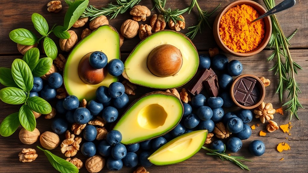 To boost your memory naturally, focus on eating brain-friendly foods like blueberries, fatty fish, and walnuts. These foods provide vital nutrients like omega-3 fatty acids and antioxidants that enhance cognitive function and improve memory. For instance, salmon offers significant omega-3s, while walnuts support mood and brain health. Staying hydrated is also crucial, as even mild dehydration can hinder your memory. Discover more about effective brain foods and how to incorporate them into your daily routine.