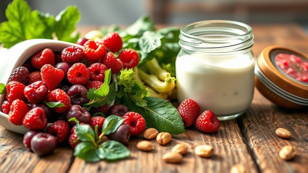 Incorporating probiotic-rich foods into your diet can significantly boost your gut health and support clearer skin. These foods for clear skin and digestion, like yogurt, kefir, sauerkraut, and kimchi, deliver live beneficial bacteria that restore your gut’s microbial balance.