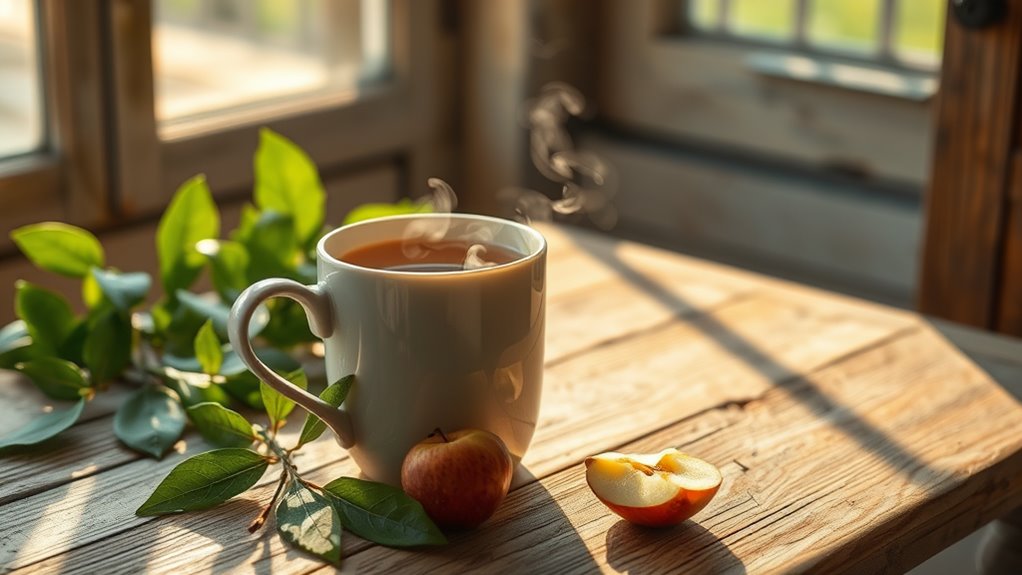 You reach for a large glass of water right away, allowing it to replenish lost fluids and electrolytes, which swiftly clears mental haze. This simple habit fosters sharper decision-making and emotional stability, drawing from evidence that adequate hydration boosts neurotransmitter function. To take it a step further, incorporate a brain-boosting beverage made from natural ingredients to enhance mental clarity even more.