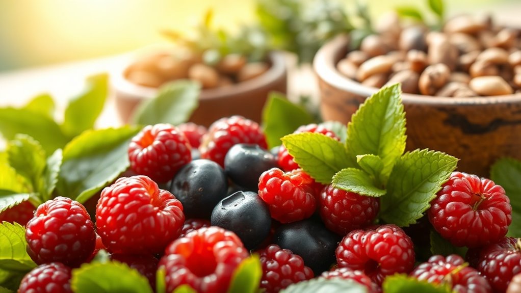 To effectively curb sugar cravings, you can turn to several natural remedies that empower you to regain control over your cravings. Herbal teas like peppermint or chamomile can soothe your mind and reduce desire. Additionally, incorporating chamomile tea in your routine not only promotes relaxation but also helps in managing anxiety that can trigger cravings. Incorporating cinnamon in meals stabilizes blood sugar levels. Additionally, staying hydrated, eating protein-rich snacks, and practicing mindfulness can help you manage your cravings successfully.