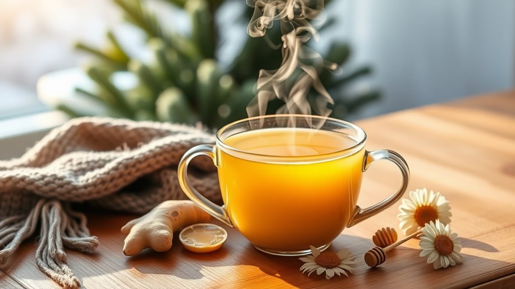 Together, these ingredients create a delicious blend that not only tastes great but also strengthens your immune response, keeping you healthier and more resilient during cold season. Additionally, traditional immunity-boosting tea has been used for centuries in various cultures to enhance overall health and wellbeing.