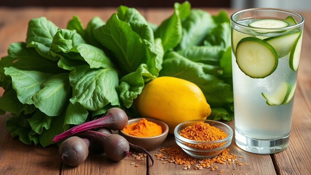 Leafy greens like spinach and kale help neutralize toxins, while avocados provide healthy fats.