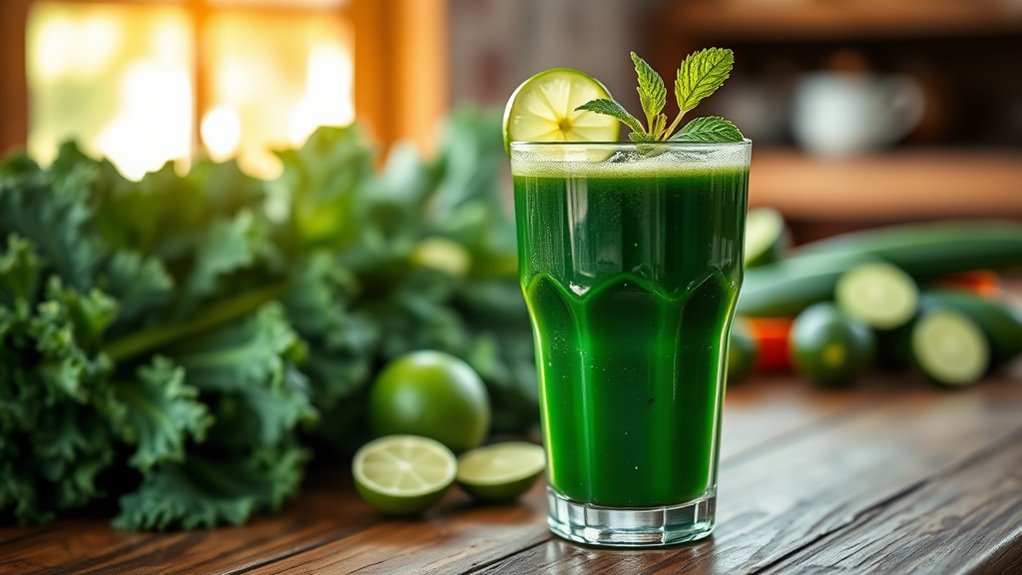 When crafting your detox juice, beetroot and lemon are key ingredients that offer significant benefits. Beetroot supports liver function and helps with detoxification due to its antioxidants, while lemon provides essential vitamin C and aids in flushing out toxins. Together, they create a powerful blend for liver health and overall wellness. Additionally, incorporating gentle detox methods can enhance the effectiveness of your juice while ensuring safety during the detox process.