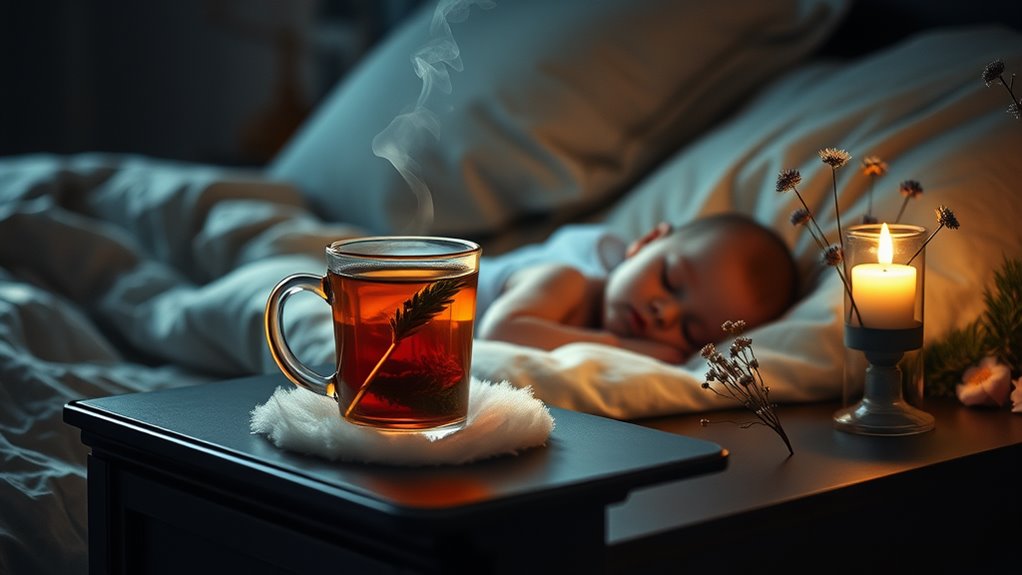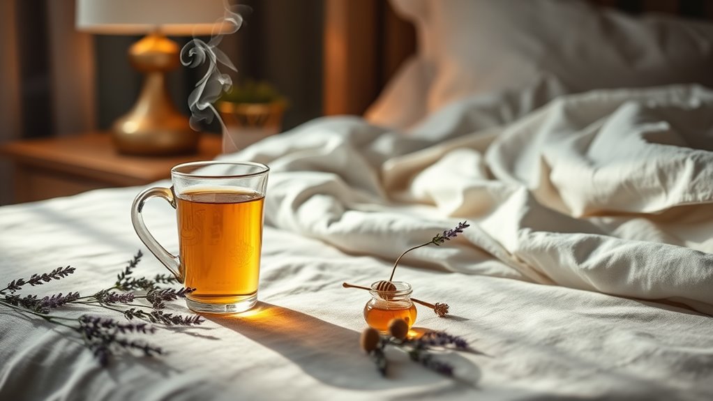 Chamomile, known for its calming effects, can reduce anxiety and help you unwind. Lavender, with its soothing aroma, has been shown to improve sleep quality by lowering heart rate and blood pressure. Valerian root acts as a natural sedative, making it easier for you to drift off. Lemon balm can also alleviate stress, enhancing your overall sense of calm.