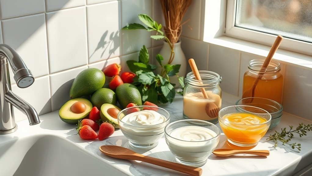 For your homemade exfoliating scrub, consider granulated sugar as a primary exfoliant; studies indicate it mechanically sloughs off dead cells while minimizing damage if used sparingly.