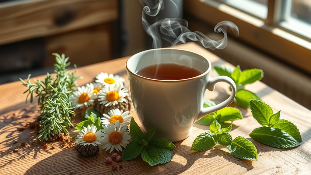 You’ll also find lemon balm, which promotes relaxation and mental clarity, allowing your thoughts to flow freely.